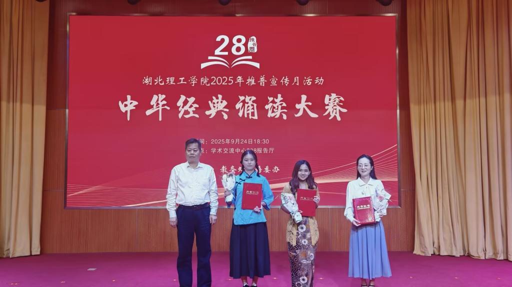 本网消息:9月24日晚上6点半,湖北理工学院2025年推普宣传月活动--“中华经典诵读大赛”在豁度楼208室隆重举行。比赛现场,各学院代表队纷纷展现出高超的诵读水平,选手们以声传情、以诵抒怀,用饱满的热情和富有感染力的声音诠释着中华经典的魅力。