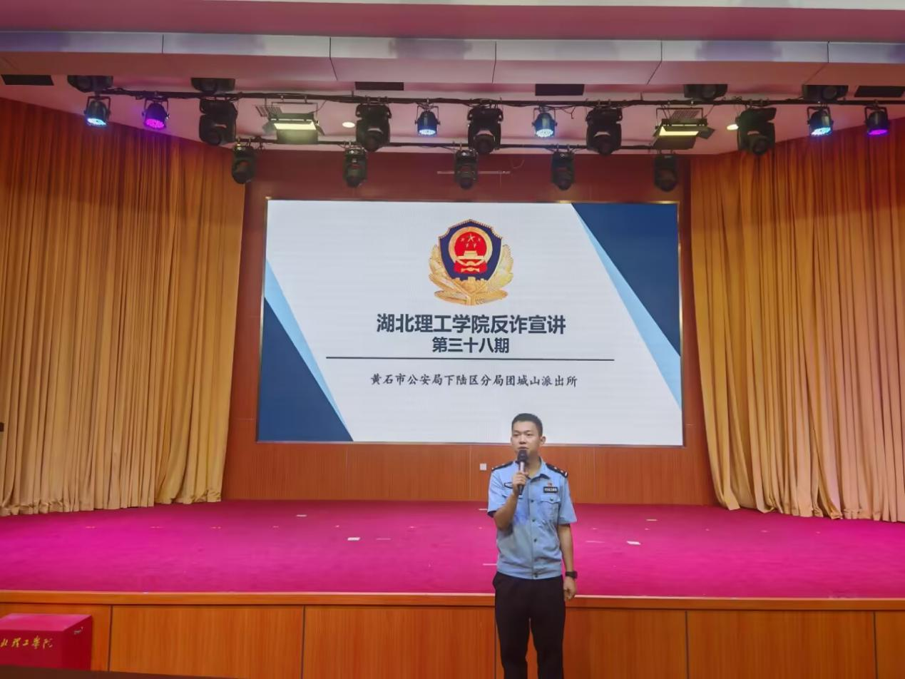 本网消息:为切实提升学生防范电信网络诈骗的意识和能力,筑牢校园安全防线,保卫处、星空体育官网登录平台联合黄石市公安局下路区分局团城山派出所于9月28日晚在豁度楼报告厅共同开展“反诈宣讲”主题讲座,讲座分批分场次进行,共计1152名学生参与。活动伊始,团城山派出所朱晟杰警官首先通过播放三个典型网络诈骗微视频,直观清晰地向同学们讲解了电信诈骗的定义与常见形式,帮助大家快速建立对反诈知识的初步认识。随后,朱晟杰警官结...