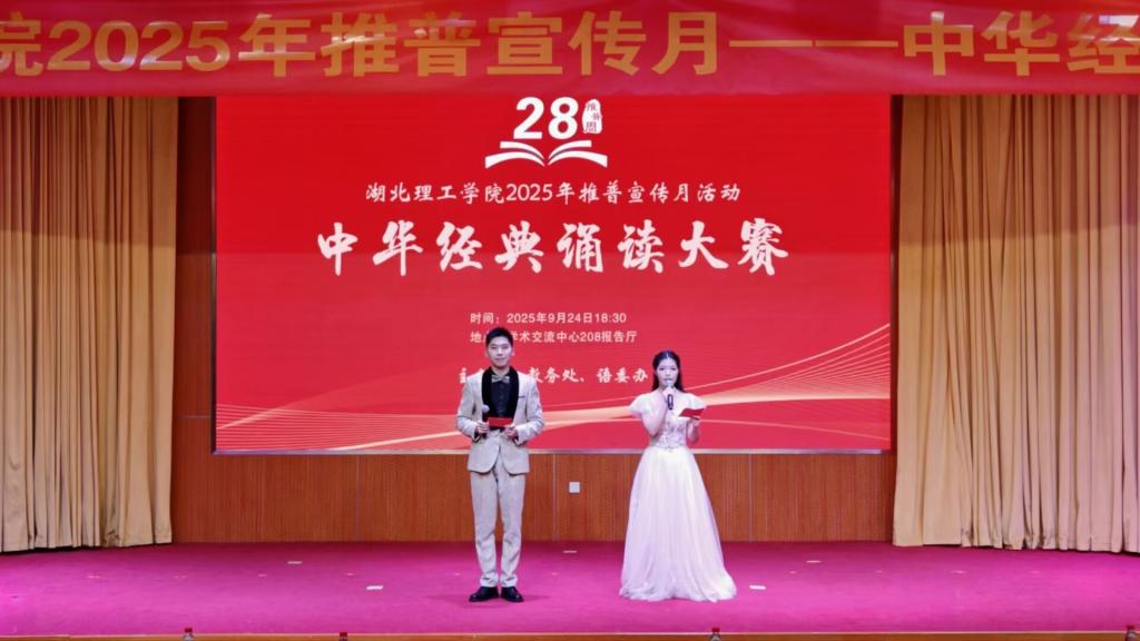 本网消息:9月24日晚上6点半,湖北理工学院2025年推普宣传月活动--“中华经典诵读大赛”在豁度楼208室隆重举行。比赛现场,各学院代表队纷纷展现出高超的诵读水平,选手们以声传情、以诵抒怀,用饱满的热情和富有感染力的声音诠释着中华经典的魅力。